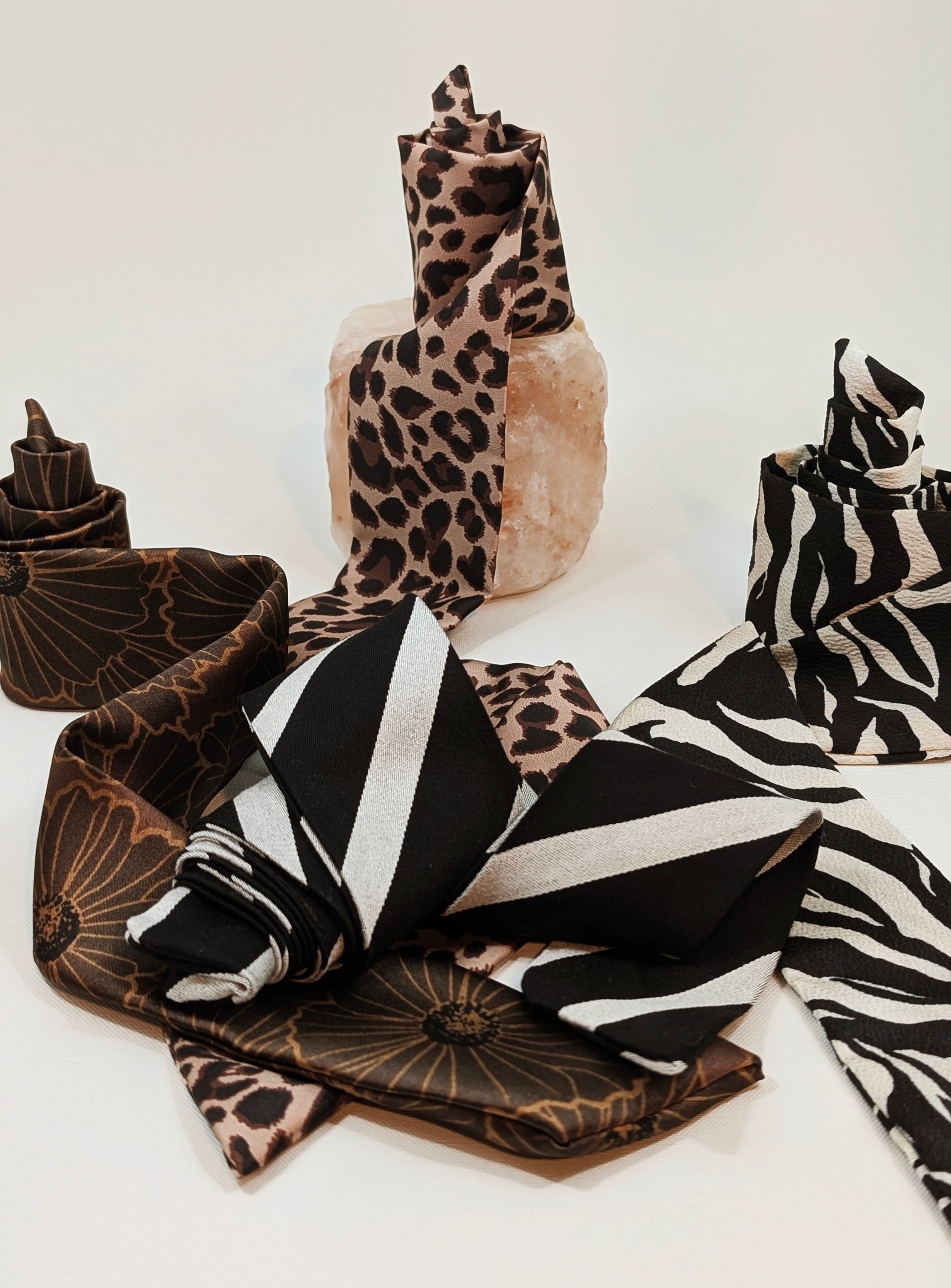 Le foulard Sonia apporte une touche d’élégance et de caractère à chacun de vos sacs avec son imprimé zébré contrasté. Noué avec soin, il devient un détail signature qui transforme instantanément un sac classique en accessoire unique. Léger et fluide, il se noue aussi bien autour d’un sac, du cou ou dans les cheveux pour un style affirmé et raffiné.